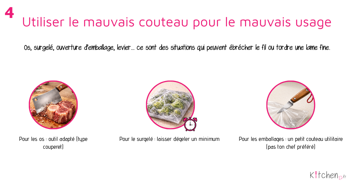 Un couteau de chef, aussi polyvalent soit-il, n’est pas conçu pour tous les usages.