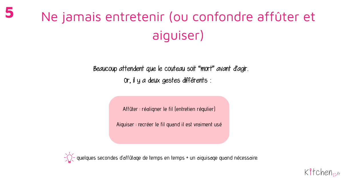Nombreux sont ceux qui attendent qu’un couteau soit totalement émoussé avant d’intervenir. Pourtant, deux gestes distincts doivent être différenciés :