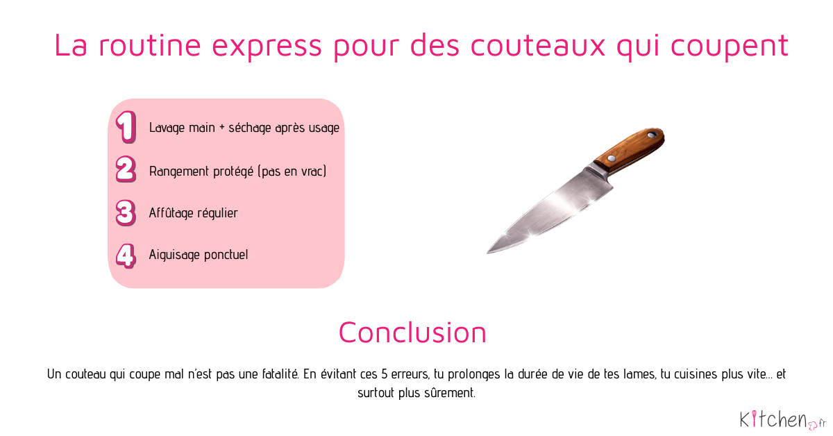 Dans la plupart des cas, la cause ne réside pas dans le couteau lui-même, mais dans certaines habitudes quotidiennes, souvent anodines en apparence.